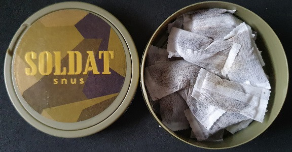 Looking at the can it has a khaki design representing the manufacturer's vision for the Soldat brand whereby it's a snus that is solid and can reliably deliver as a good soldier would.
