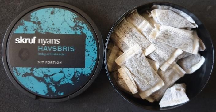 From Skruf Snus here we have Skruf Nyans Havsbris with a mild tobacco taste together with hints of fresh herbs.