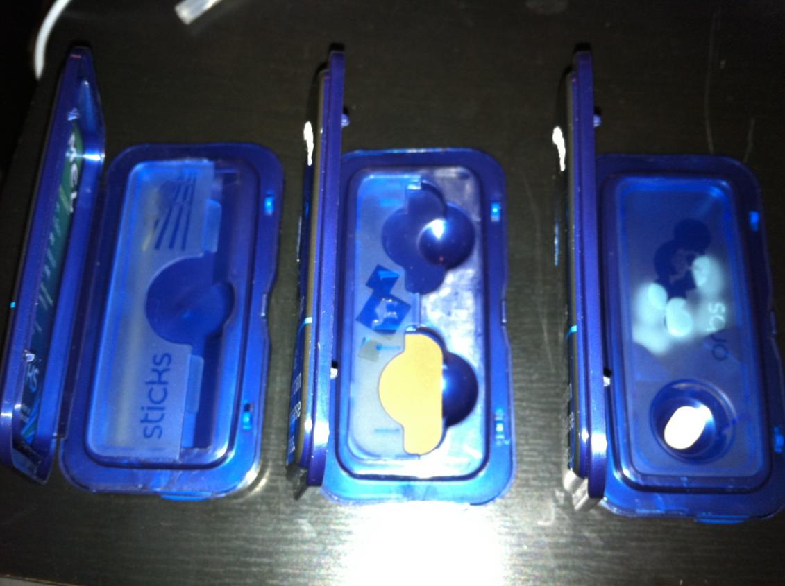 In the first picture are the Sticks, Strips and finally Orbs. Each box contains 12 pieces of the respective item, and are dispensed through a clever little device specific to the item being dispensed as you can see from the second picture. I have used all of them several times and I can say that the Sticks are my go to drug. They last a long time and keep that darn cig out of my mouth! The strips dissolve WAY too fast and the orbs are a close second. With both of the latters I need to use more than one to keep the urges at bay, but the sticks have come through for me on more than one occasion. These are selling right now for $2.56 each and will last according to your necessities. Need more pictures or a shot of the brochure lemme know. Also let me know if you aren't able to find them in your neck of the woods. ;-)