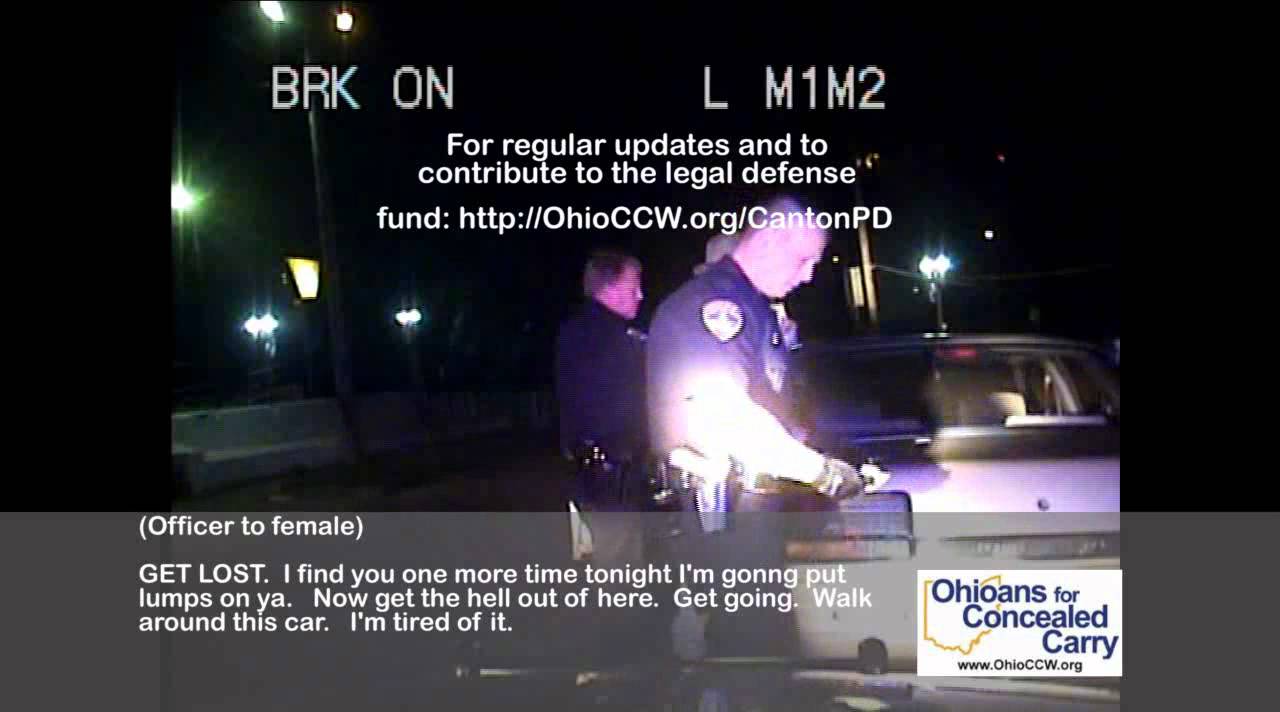 UPDATE 7/22/2011: Canton Police announced Thursday that the officer was relieved of all duties in June following an internal investigation complaint filed in this matter. The local Canton Repository has done some additional investigatory work into the officers and an excellent analysis of the video / audio we posted. The video and story has gone both viral and national crossing over to websites not typically affiliated with the pro-gun movement. Shortly after 7:00pm Thursday our website could no longer handle the volume of visitors we were receiving. We promptly quadrupled the resources behind OhioCCW.org in light of the popularity of this story.