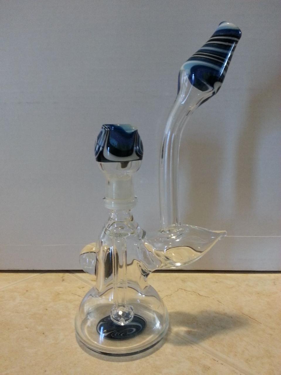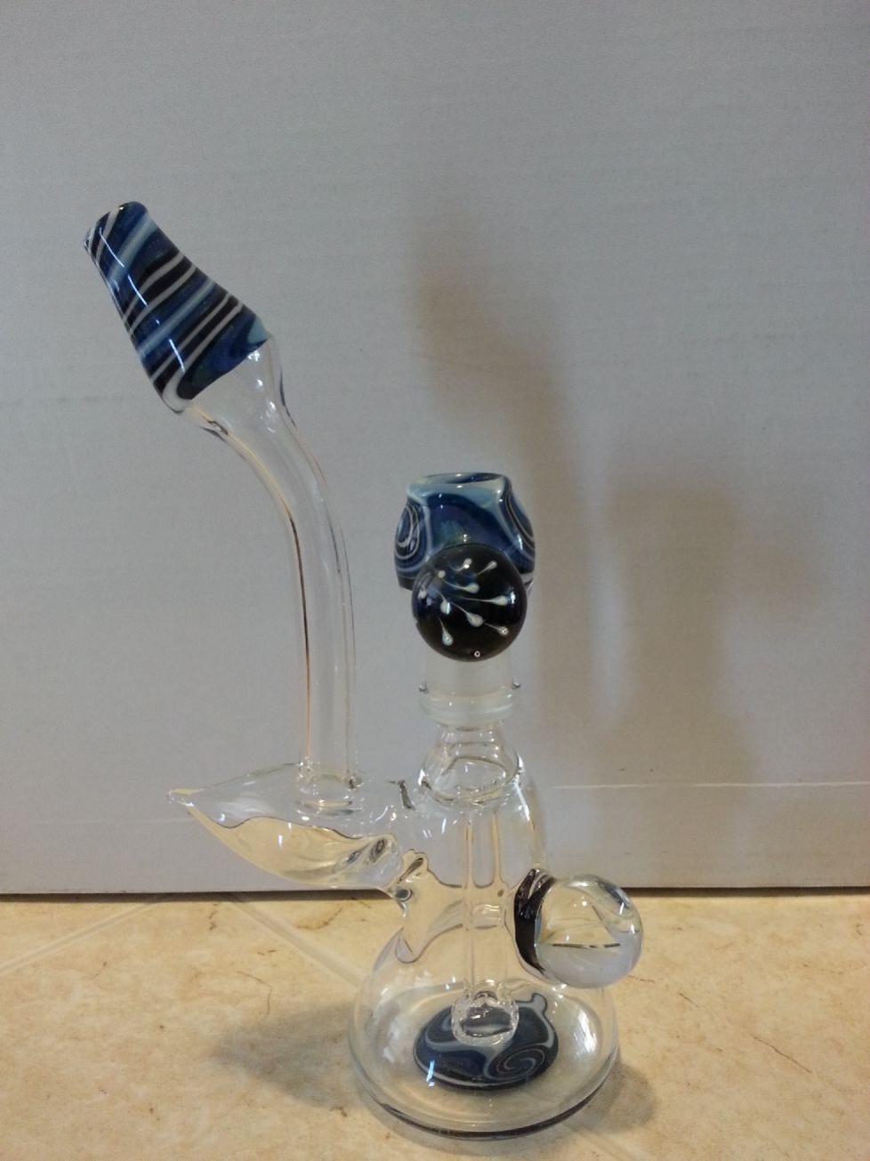 Well, Here it is. And I gotta say, Damn this man has talent. LOVE the marbles Pics don't do it complete justice. Gotta snap some good ones with my DSLR. These are just phone pics. The piece is about 7 inches tall, forgot to add a lighter for "scale". Anyway, here is the new piece, getting LOTS of use already.