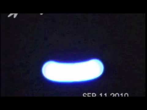 The weird thing is that it's so bright. It's got this stadium lighting around the edges and it's MEGA bright. He described it as like a thousand flood lights. It's so bright you can only make out it's general shape, and it glows blue in color. He said at first him and the neighbor couldn't figure out what it was, and him being a scientist he figured it was maybe a blimp or something at first. Then he broke out the camera because he realized it was completely silent and would have to have a MAJOR power source. He recorded it for 10 minutes and then said it just kept flying around for a while so he turned the camera off since he wasn't sure how long it would be there. He said later on it just exploded up into the sky.