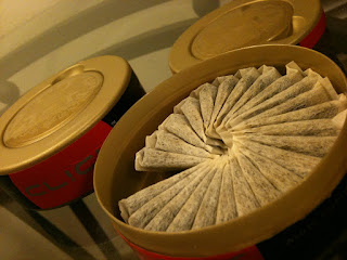 When I opened up the can a really deep, rich tobacco aroma hit me, it was almost like opening a can of los - it's a very pure aroma. The portions are the standard SM white portion - which means their in a wedge shape, so you'll want to fluff them a little to make them comfortable in your lip. The taste is pretty spicy and unique. The tobacco flavor is very bold, very rich and strong. The salt in this snus isn't as present as in others, and I find a nice little pepper taste in the background too. The herbal taste isn't the predominant flavor of this snus, but it is in the background as a nice little afterthought that comes in midway through the snuslife. It all melds together pretty well in this neat little spicy package.
